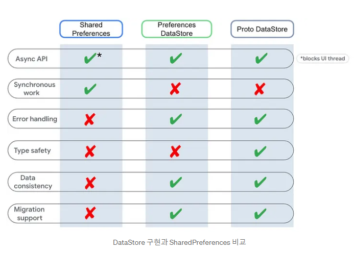 기존에 앱에서 SharedPreference를 사용하면서 포착되지 않은 예외가 발생하거나 분석에서 이상한 충돌이 발생하거나 UI 스레드를 차단하는 등 여러 가지 문제를 해결하기 위해 구축되었다.